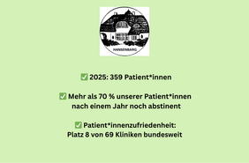 Im Fachkrankenhaus Hansenbarg wurden 2025 359 Menschen auf ihrem Weg aus der Alkoholabhängigkeit begleitet. Wir bieten hier eine Entwöhnungsbehandlung an. Das Ergebnis spricht für sich: