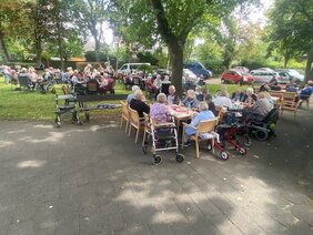 Im Garten genossen 80 TeilnehmerInnen kostenlos eine Bratwurst und ein alkoholfreies Getränk, bevor die Inklusionsband „Gegenwind“ aus der Werkstatt für Menschen mit Behinderungen “Werkhus“ in Husum zu einem tollen Konzert aufspielte.